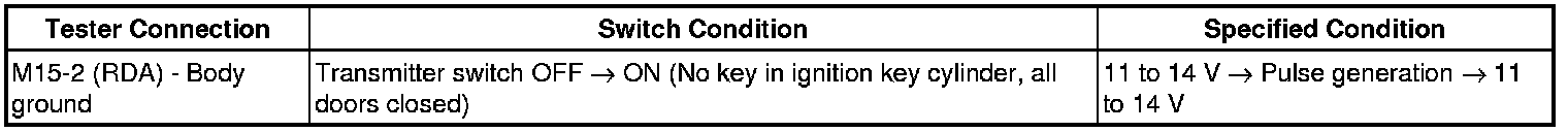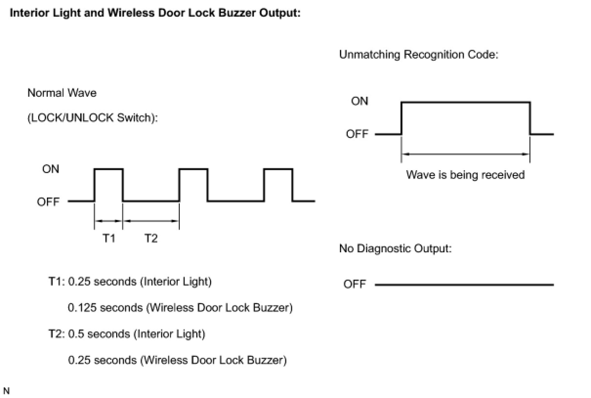 (a) Inspect the diagnostic outputs when the door control transmitter switch is held down. The diagnostic outputs can be checked by the flash patterns of the interior lights and the buzzer patterns of the wireless door lock buzzer.