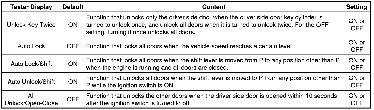 DOOR LOCK: POWER DOOR LOCK CONTROL SYSTEM: CUSTOMIZE PARAMETERS