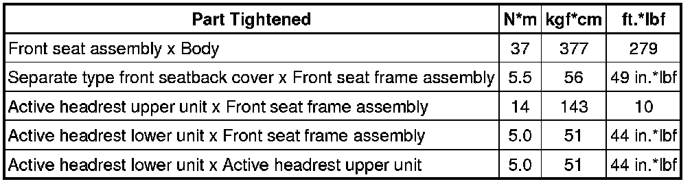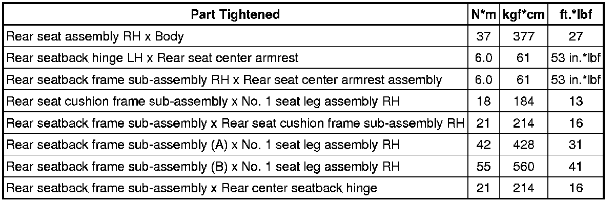 SPECIFICATIONS: SEAT: TORQUE SPECIFICATIONS