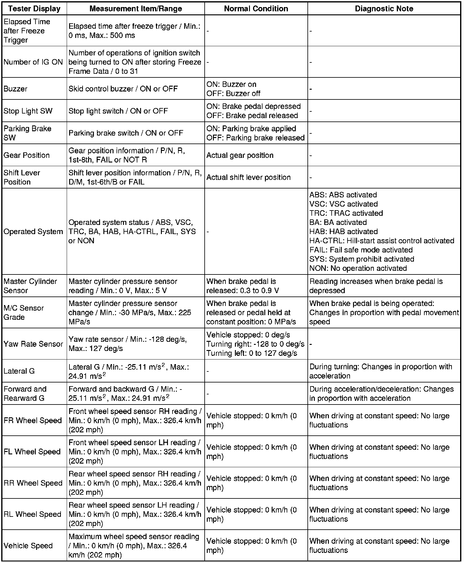 * When the skid control ECU stores data at the time a DTC is detected, no updates will be performed until the data is cleared.