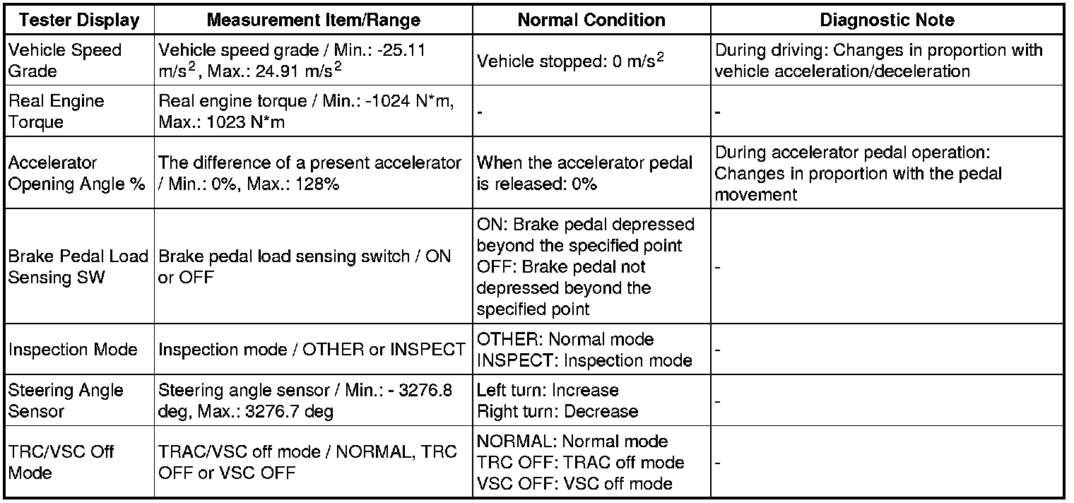 BRAKE CONTROL / DYNAMIC CONTROL SYSTEMS: VEHICLE STABILITY CONTROL SYSTEM: FREEZE FRAME DATA