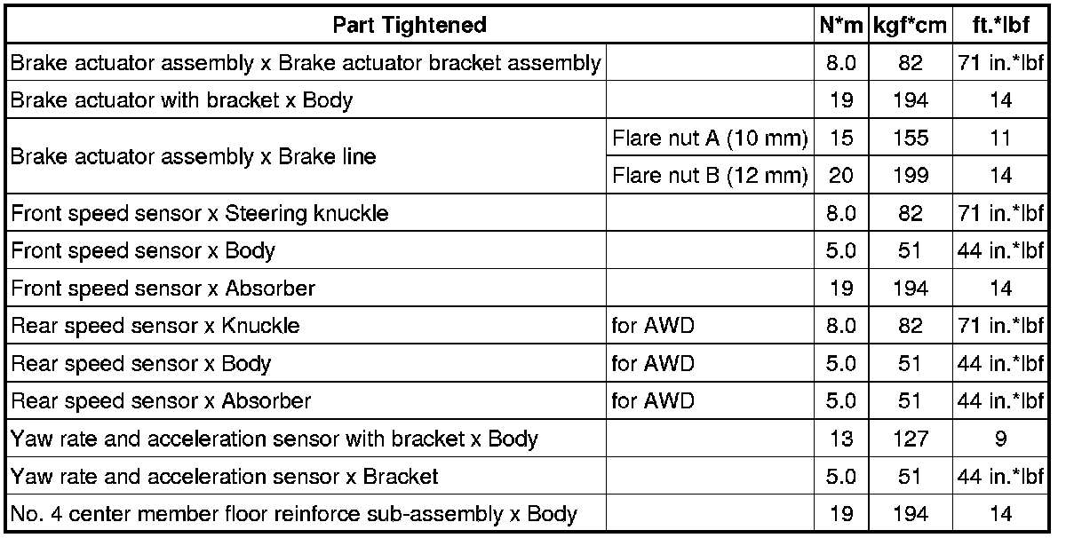 SPECIFICATIONS: BRAKE CONTROL / DYNAMIC CONTROL SYSTEMS: TORQUE SPECIFICATIONS
