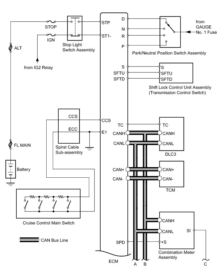 * The ECM cancels cruise control operation when the brake pedal is depressed and the ECM receives a stop light switch signal.