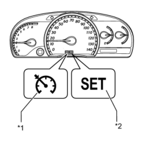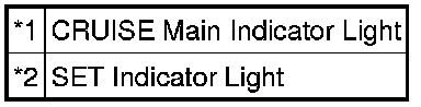 * The ECM illuminates the combination meter SET indicator light when constant speed control is set with pushing the cruise control main switch to - SET while driving.