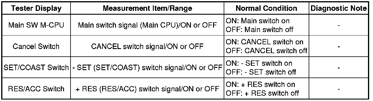 CRUISE CONTROL: CRUISE CONTROL SYSTEM: Cruise Control Switch Circuit