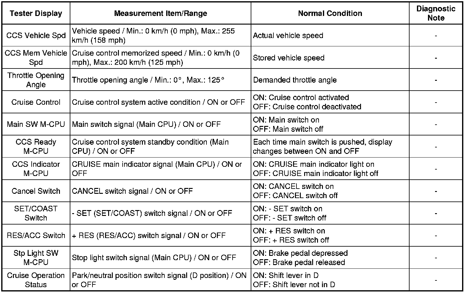 CRUISE CONTROL: CRUISE CONTROL SYSTEM: DATA LIST / ACTIVE TEST