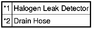* When bringing the halogen leak detector close to the drain hose, make sure that the halogen leak detector does not react to volatile gases. If it is not possible to avoid interference from volatile gases, the vehicle should be lifted up to allow testing.