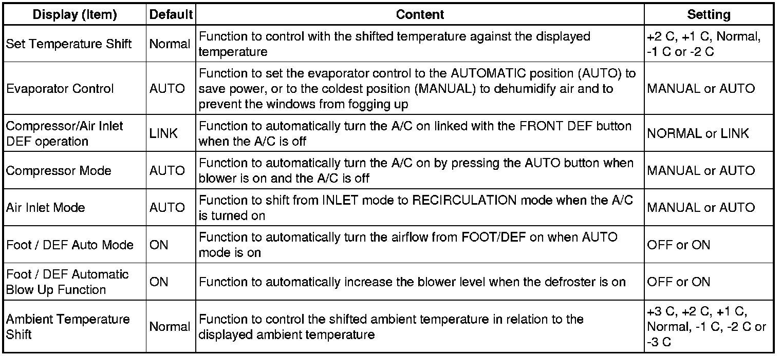 HEATING / AIR CONDITIONING: AIR CONDITIONING SYSTEM (for Automatic Air Conditioning System): CUSTOMIZE PARAMETERS