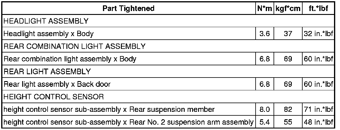 SPECIFICATIONS: LIGHTING (EXT): TORQUE SPECIFICATIONS