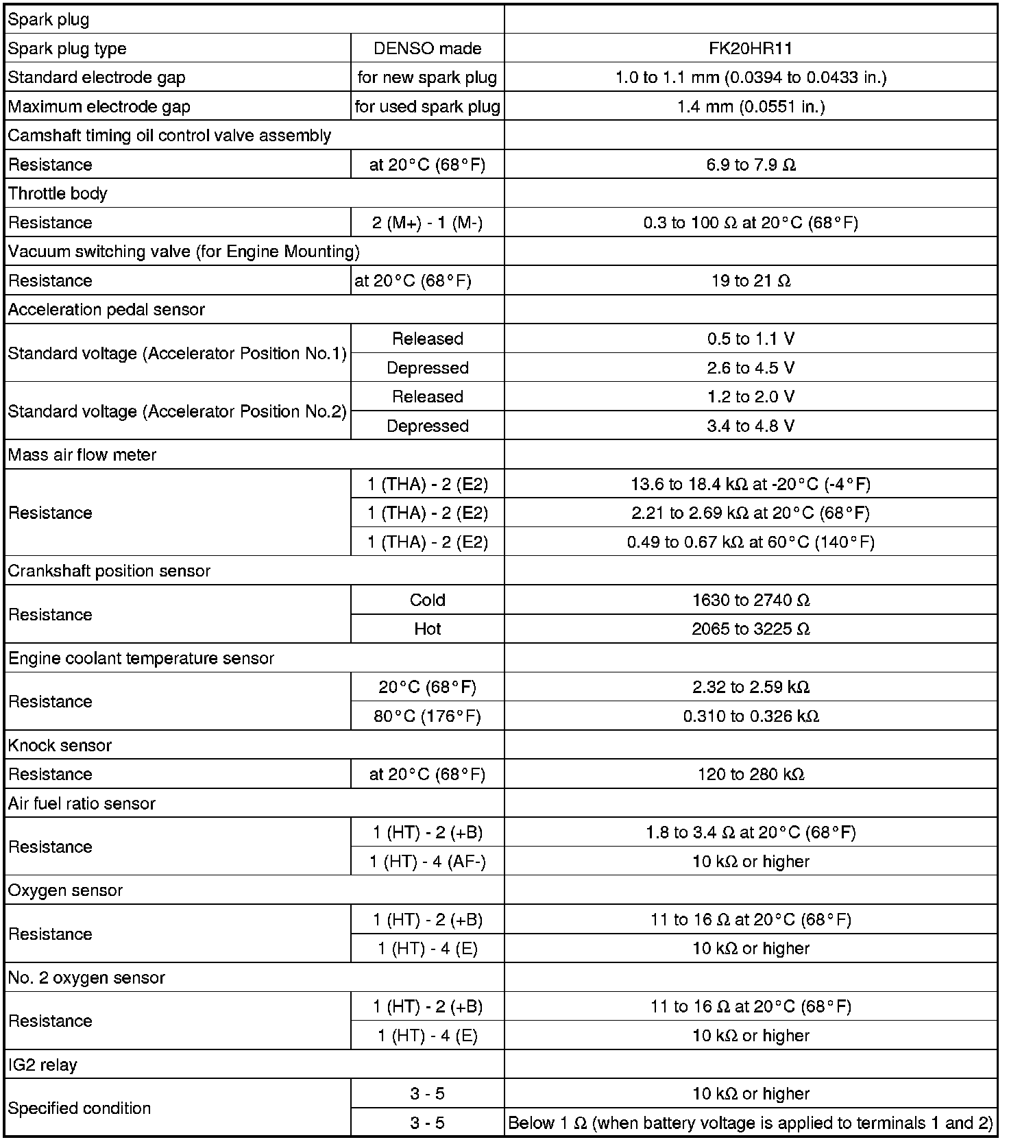SPECIFICATIONS: 2GR-FE ENGINE CONTROL: SERVICE DATA