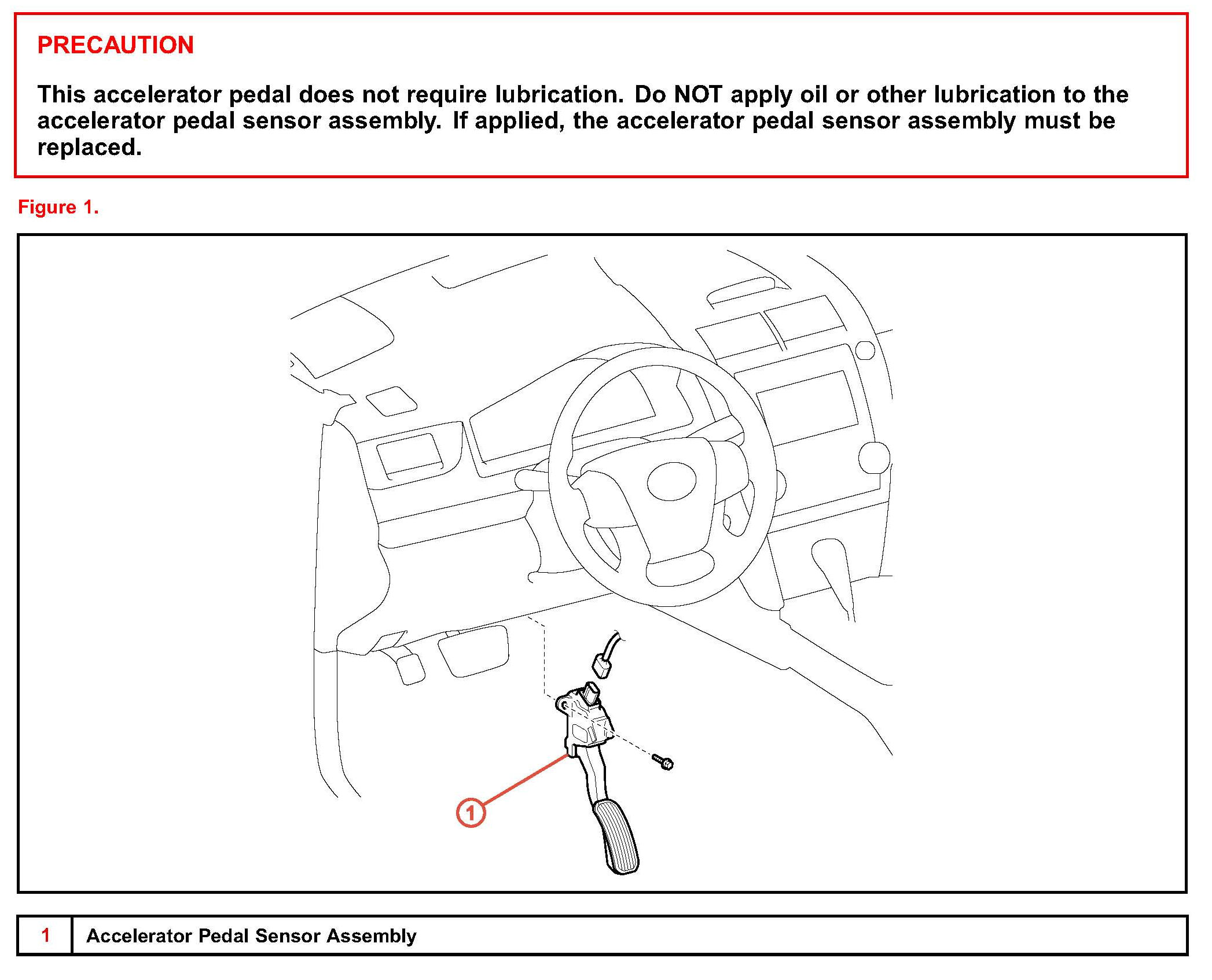 This bulletin provides a service precaution related to the accelerator pedal sensor assembly during inspection, removal, and installation.