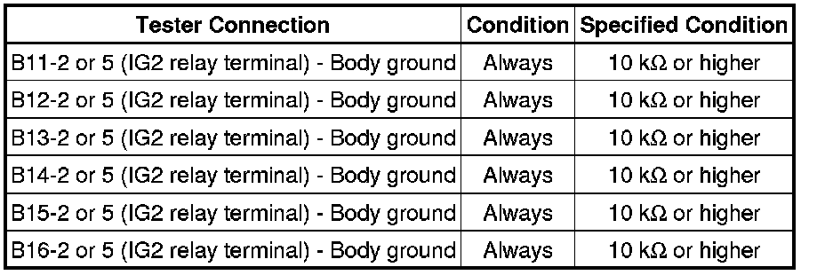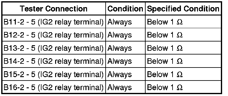 NG -- CHECK HARNESS AND CONNECTOR (IG2 RELAY - FUEL INJECTOR ASSEMBLY)