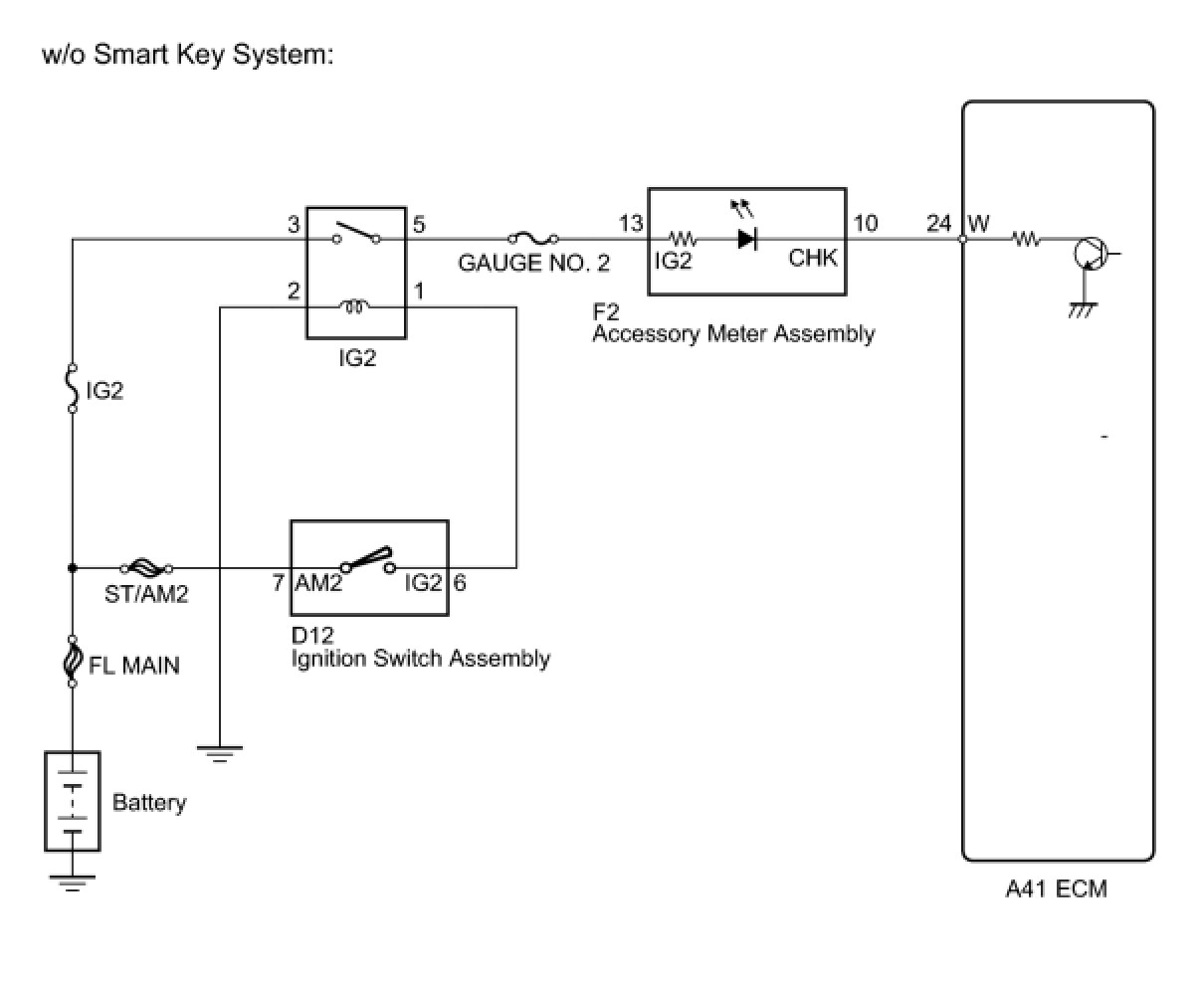 The Malfunction Indicator Lamp (MIL) is used to indicate vehicle malfunctions detected by the ECM. By turning the ignition switch to ON, power is supplied to the MIL circuit, and the ECM provides the circuit ground which illuminates the MIL.