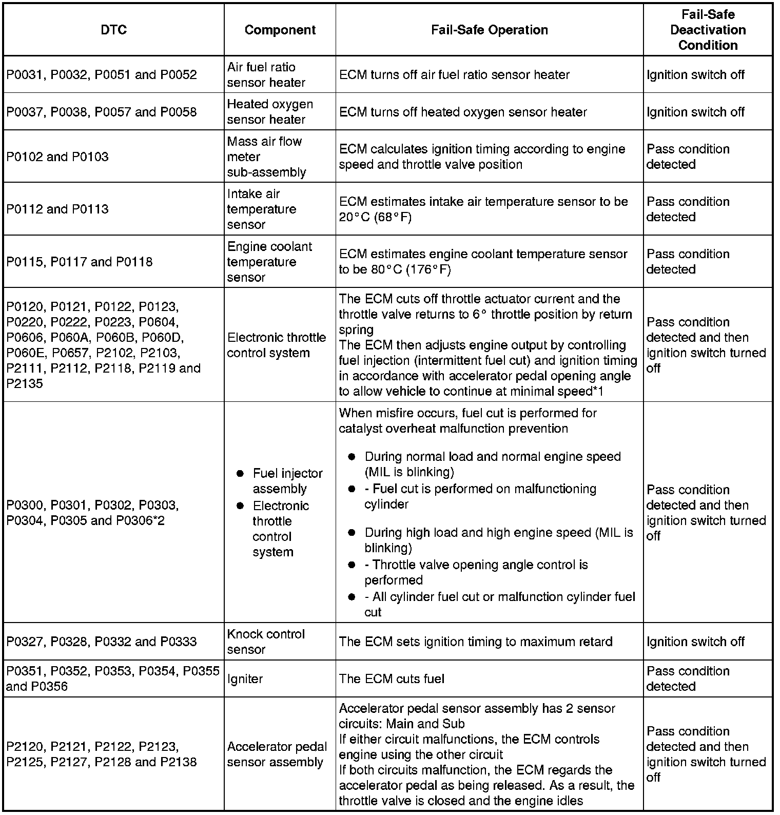 * *2: Misfire related fail-safe operations occur when catalyst overheat malfunctions occur.