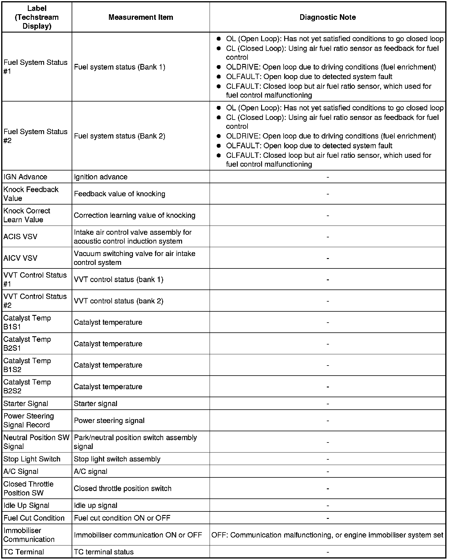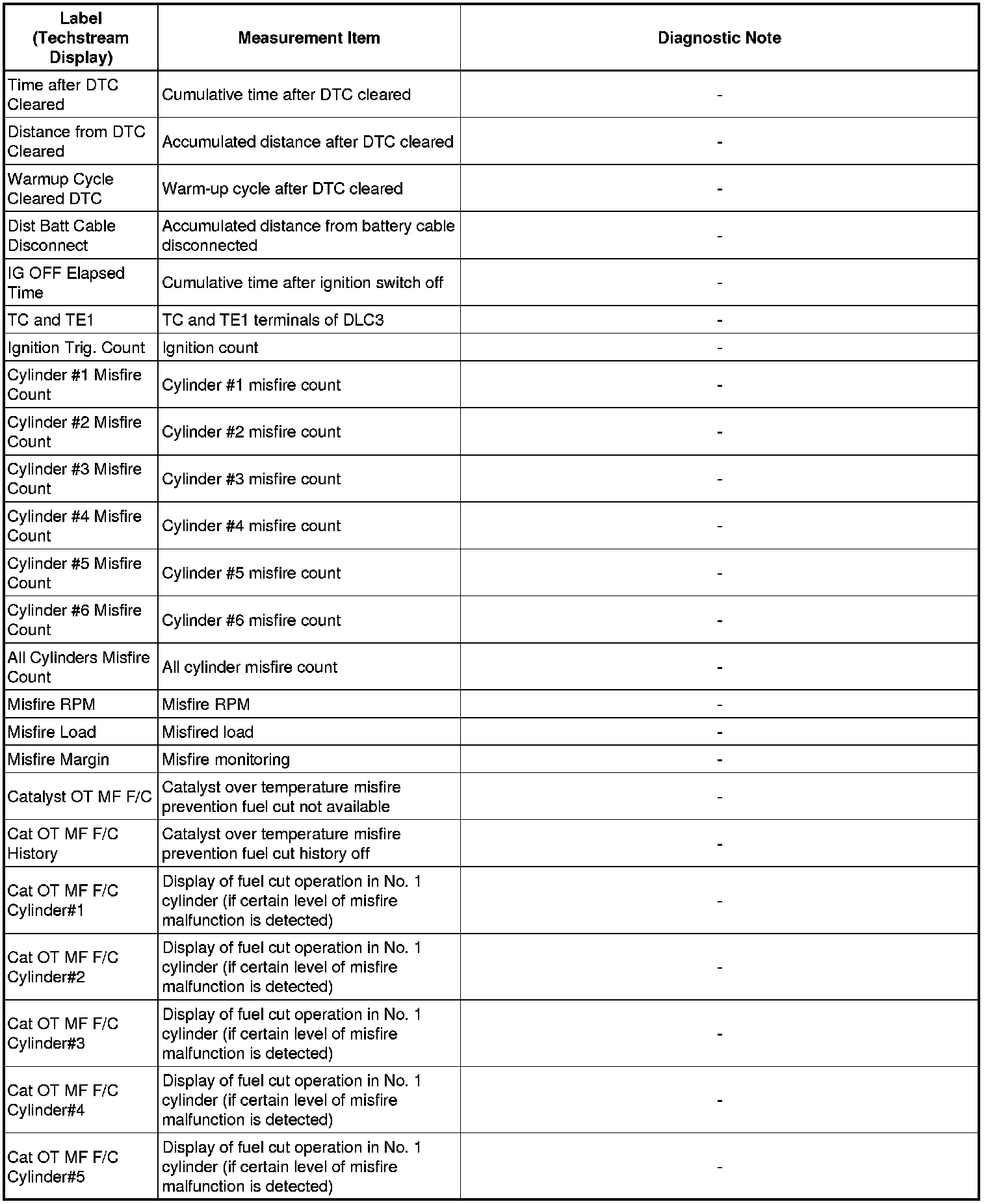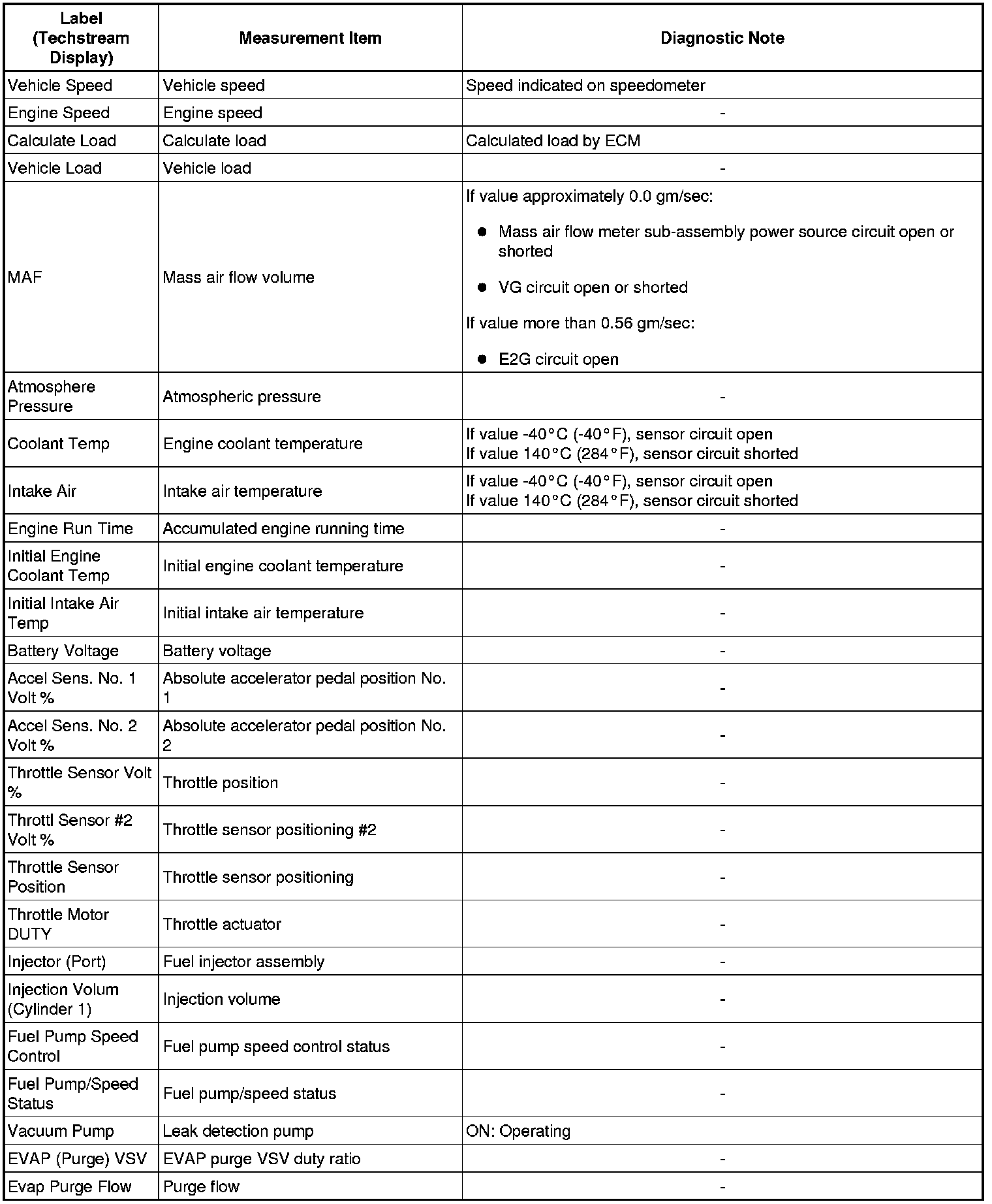 2GR-FE ENGINE CONTROL: SFI SYSTEM: FREEZE FRAME DATA