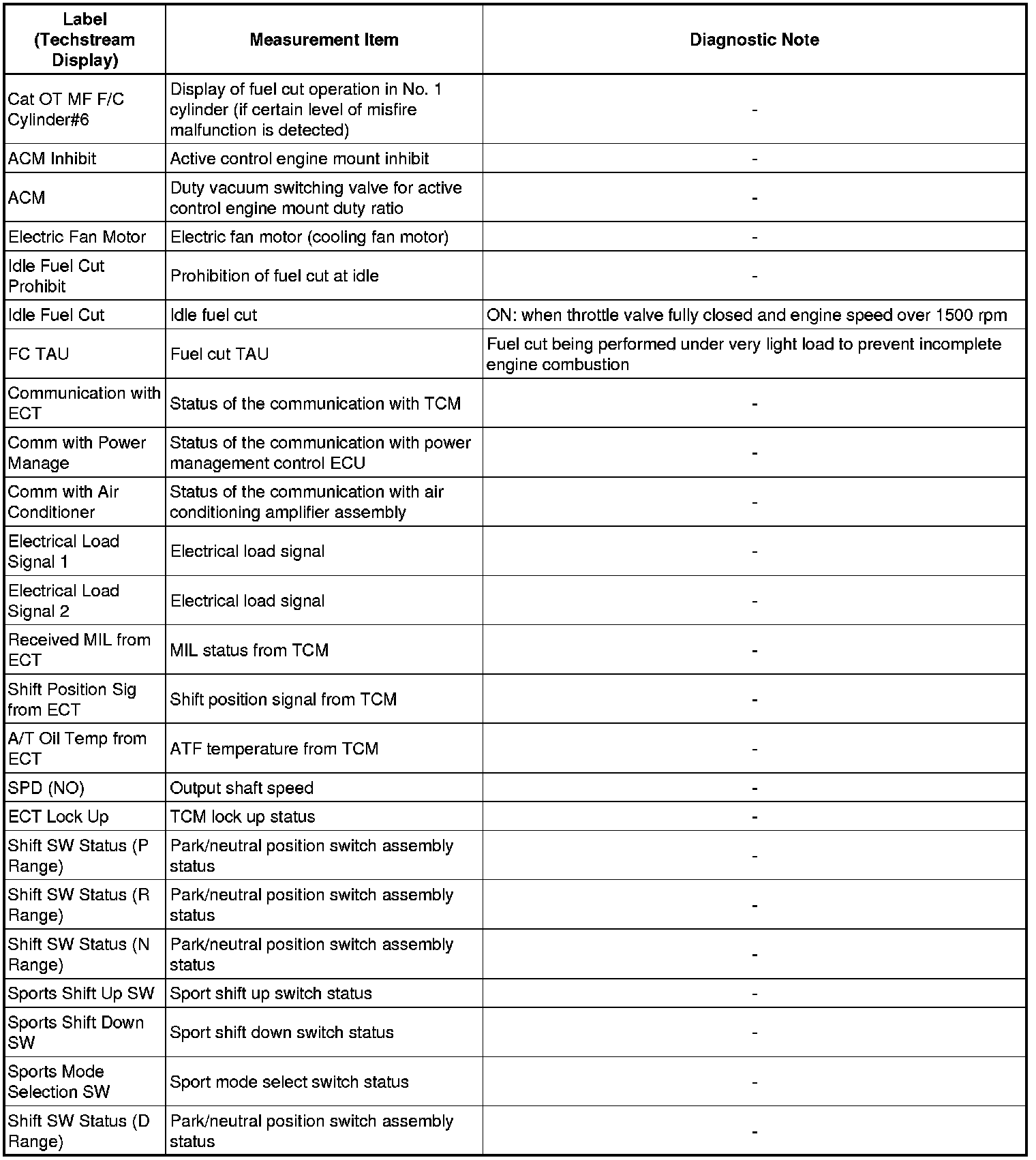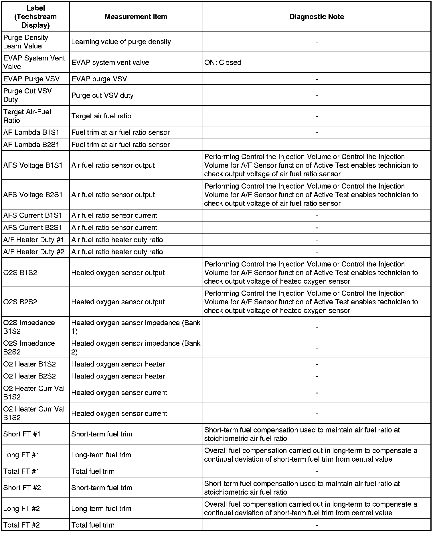 * The ECM records vehicle and driving condition information as freeze frame data the moment a DTC is stored. When troubleshooting, freeze frame data can be helpful in determining whether the vehicle was running or stopped, whether the engine was warmed up or not, whether the air fuel ratio was lean or rich, as well as other data recorded at the time of a malfunction.
