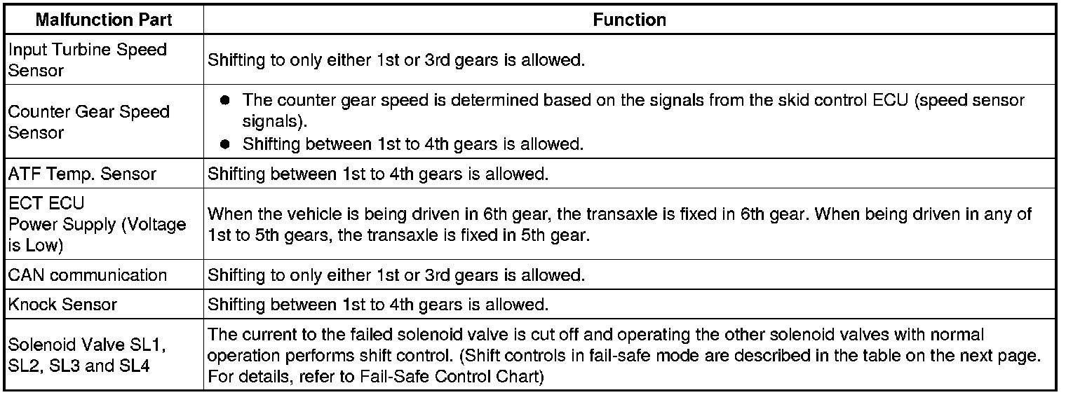 This function minimizes the loss of operation when any abnormality occurs in a sensor or solenoid.