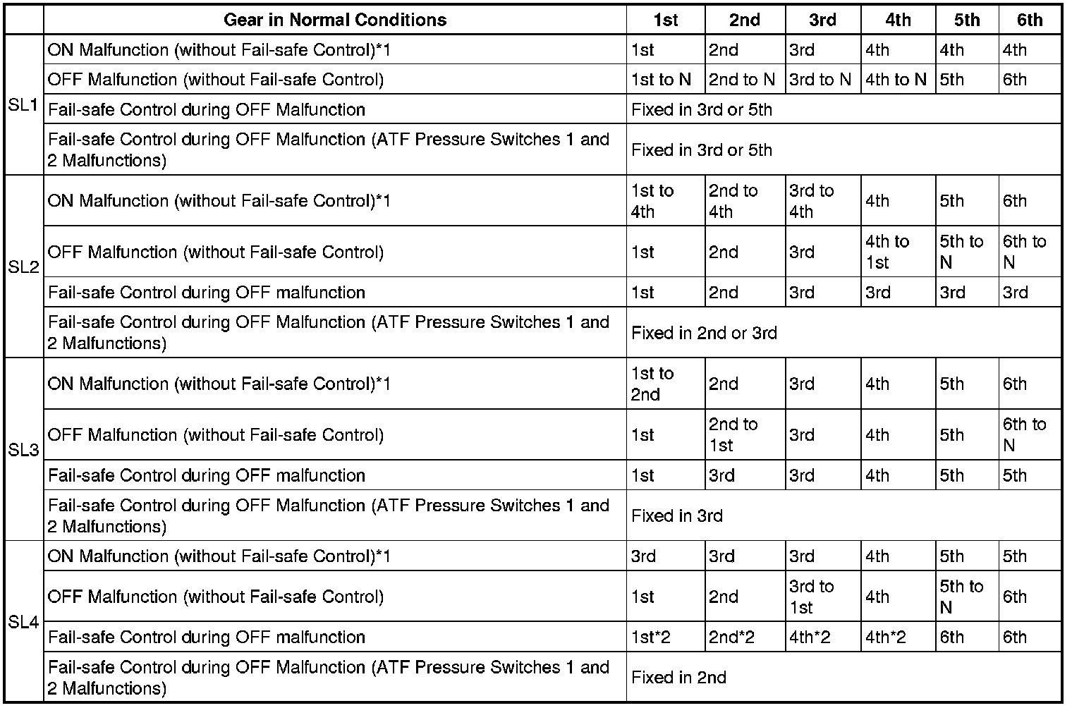 *1: Fail-safe control is not actuated when an ON malfunction occurs.