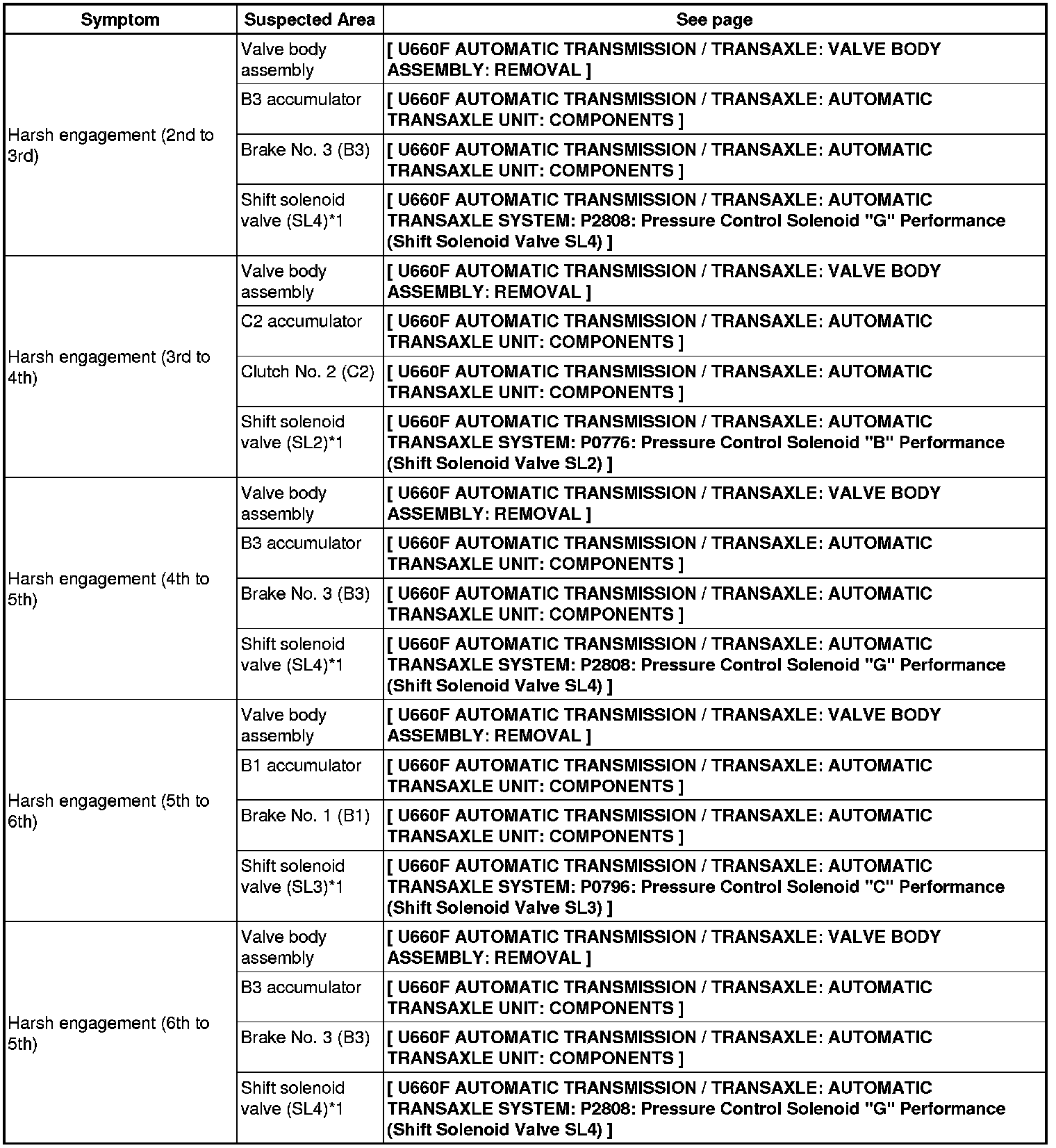 U660F AUTOMATIC TRANSMISSION / TRANSAXLE: AUTOMATIC TRANSAXLE SYSTEM: PROBLEM SYMPTOMS TABLE