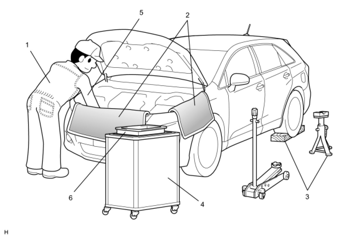 (b) JACKING UP AND SUPPORTING VEHICLE