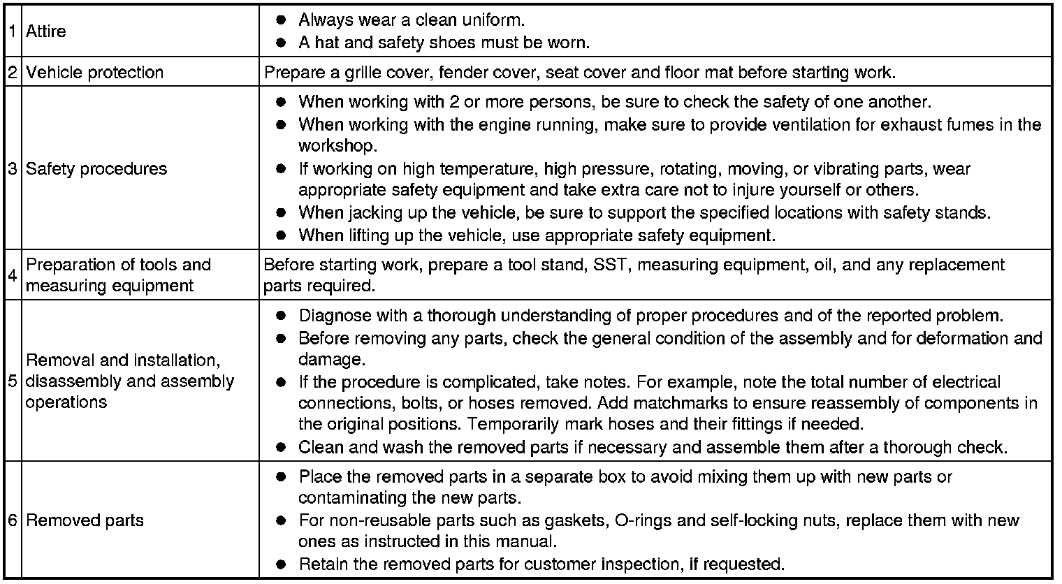 (1) The removal and installation methods of typical hinges, guides, clamps and pins used for vehicle body parts are shown in the table below.
