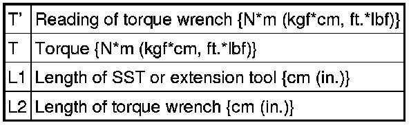 (1) Use the formula below to calculate special torque values for situations where SST or an extension tool is combined with a torque wrench.