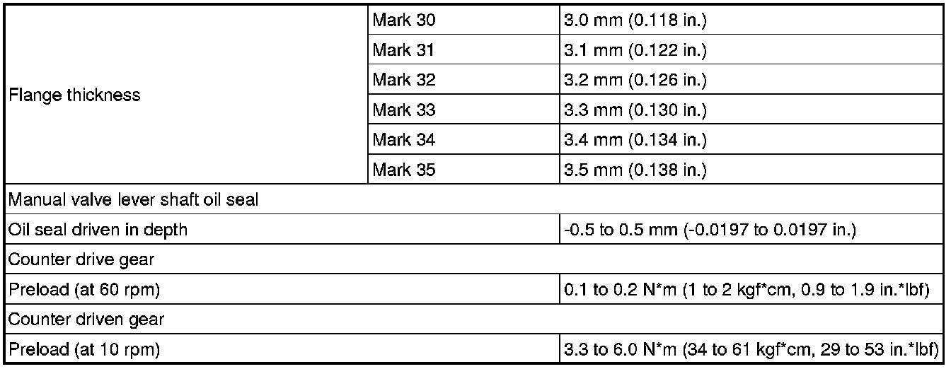 SPECIFICATIONS: U660F AUTOMATIC TRANSMISSION / TRANSAXLE: SERVICE DATA