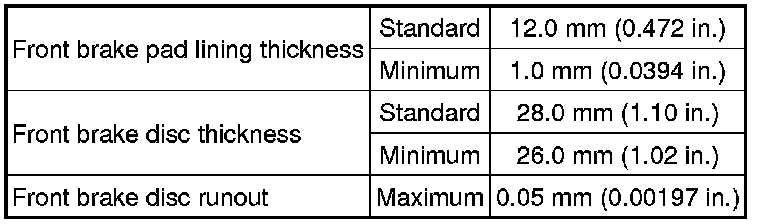 SPECIFICATIONS: BRAKE (FRONT): SERVICE DATA