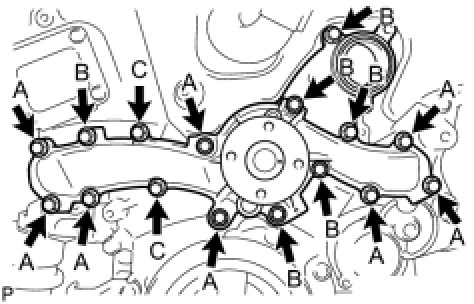 Bolts B and C - Torque 11 Nm (112 kgf-cm, 8 ft-lbf)