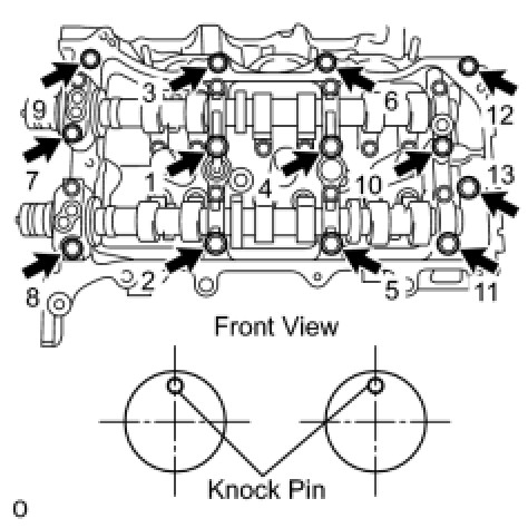 Install the camshaft housing sub-assembly LH and tighten the 13 bolts in the order shown in the illustration.
