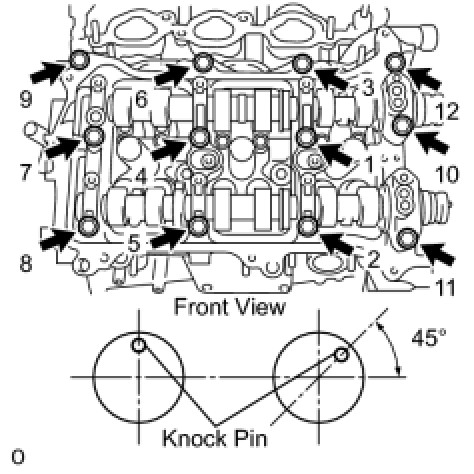 Install the camshaft housing sub-assembly RH and tighten the 12 bolts in the order shown in the illustration.