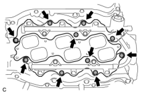 INTAKE MANIFOLDInstall and tighten the 6 bolts and 4 nuts uniformly in several steps.Torque 21 Nm (214 kgf-cm, 15 ft-lbf)