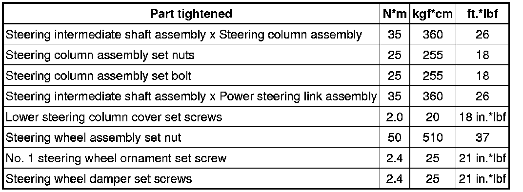 SPECIFICATIONS: STEERING COLUMN: TORQUE SPECIFICATIONS