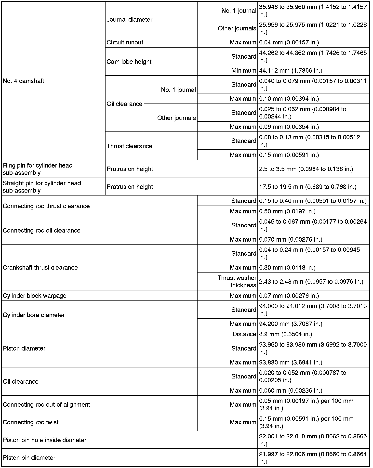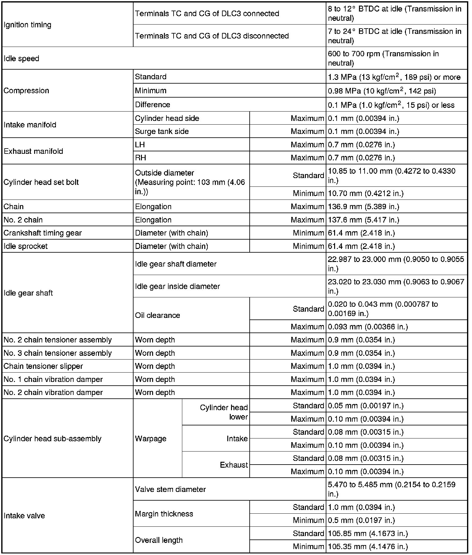 SPECIFICATIONS: 2GR-FE ENGINE MECHANICAL: SERVICE DATA
