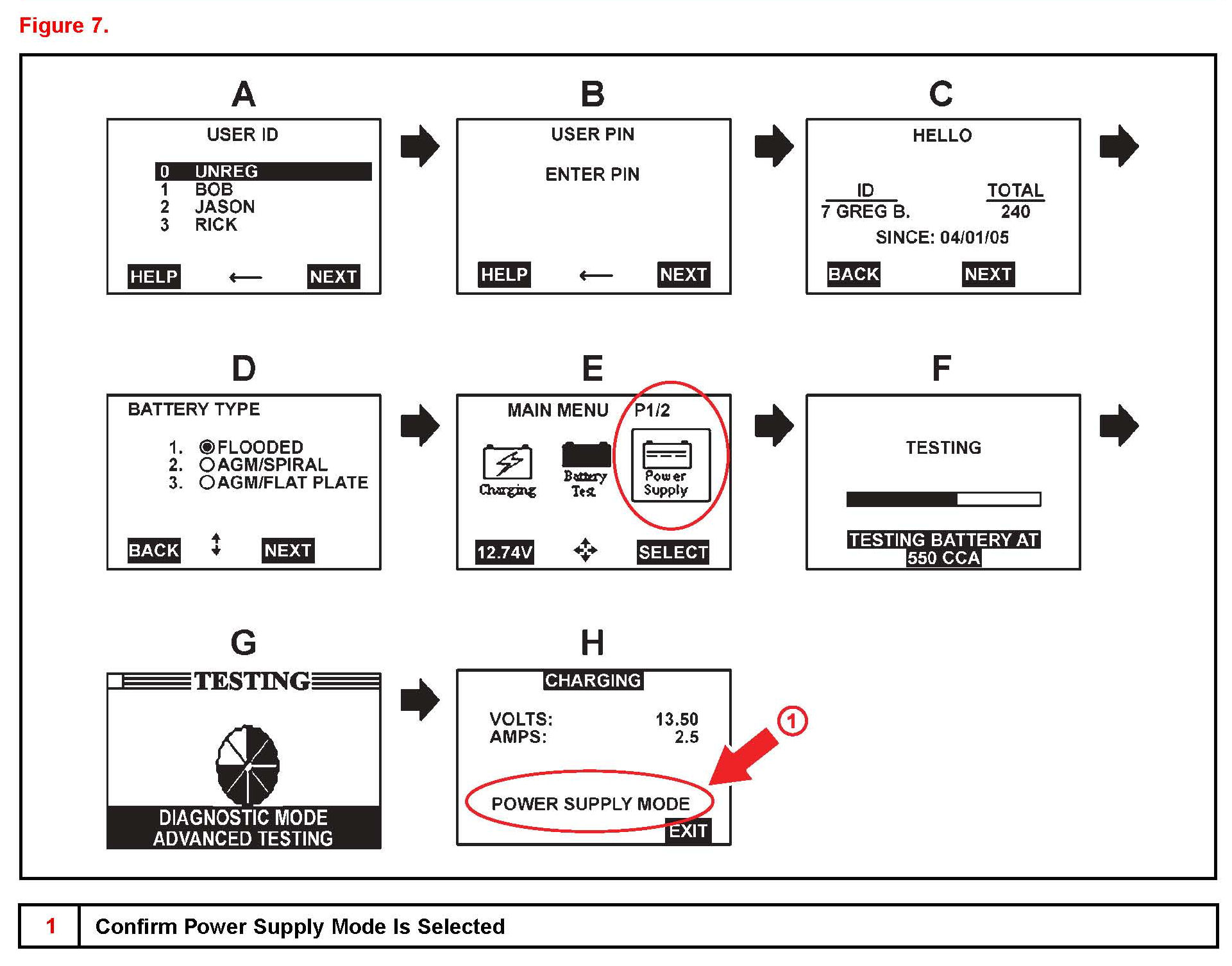 2. Connect the GR8 Battery Diagnostic Station using "Power Supply Mode" only.