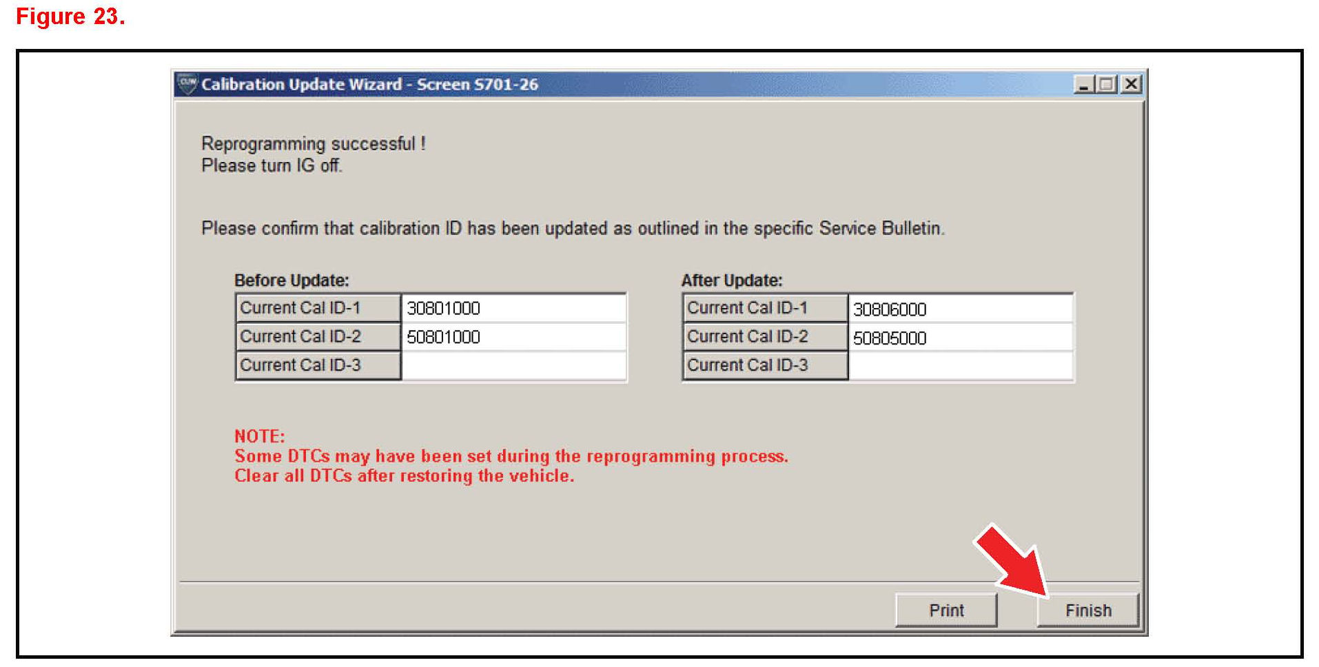 0. Confirm all calibrations were updated as specified in the Service Bulletin. Then click "Finish".