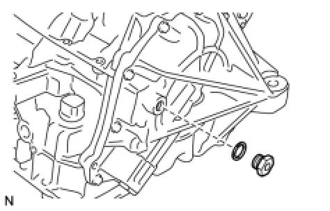 (a) Remove the oil cooler tube union (outlet oil cooler union) from the transaxle case.
