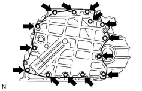 (a) Remove the 11 bolts and valve body assembly from the transaxle case.