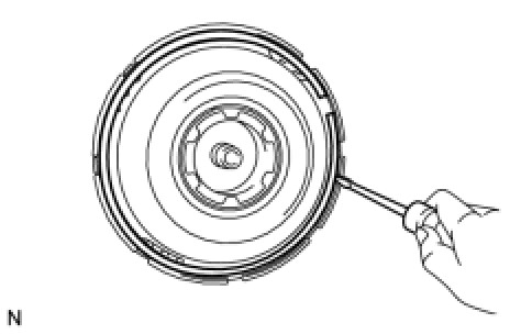 (a) Using 2 screwdrivers, remove the 2 snap rings from the direct multiple disc clutch assembly.