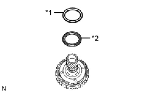 (b) Remove the thrust needle roller bearing and thrust needle roller race from the underdrive planetary gear assembly.