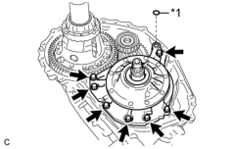 (a) Remove the 7 bolts and oil pump from the transaxle case.
