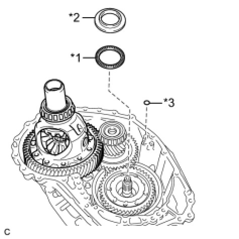 (c) Remove the thrust needle roller bearing and thrust needle roller race from the carrier lock nut.