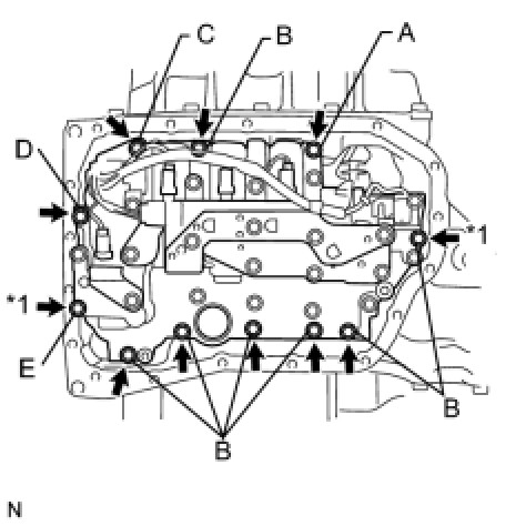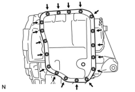 * In order to ensure proper sealing of the transmission pan bolts, apply adhesive to the bolts and install them within 10 minutes of adhesive application.