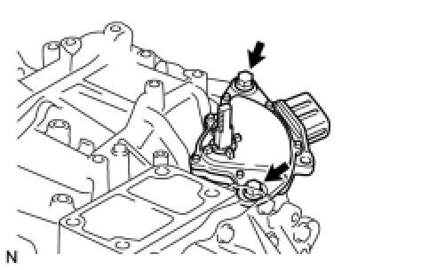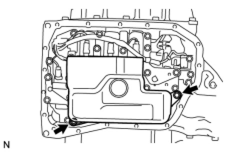 (b) Install the oil strainer assembly to the valve body assembly with the 2 bolts.