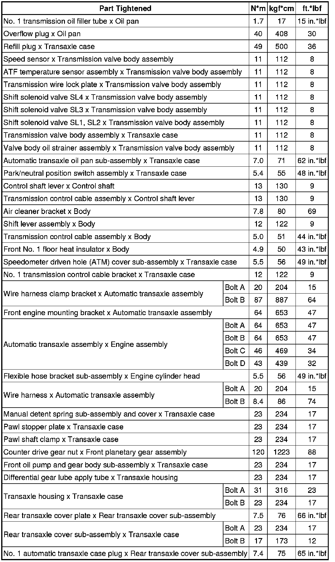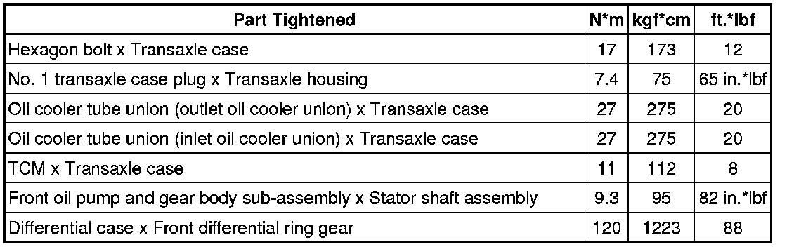 SPECIFICATIONS: U660F AUTOMATIC TRANSMISSION / TRANSAXLE: TORQUE SPECIFICATIONS