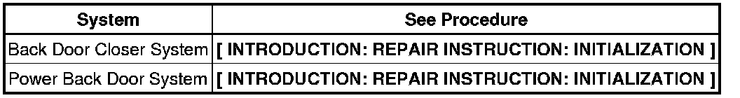 When disconnecting the cable from the negative (-) battery terminal, initialize the following systems after the cable is reconnected: