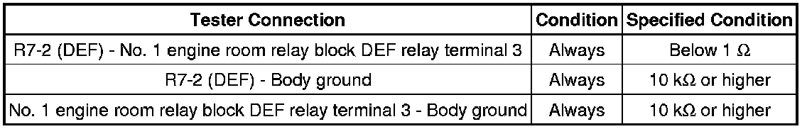 7. CHECK HARNESS AND CONNECTOR (DEF RELAY POWER SOURCE)