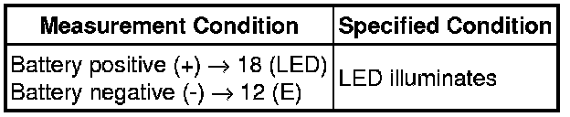 (1) Apply battery voltage to the power window regulator master switch assembly and check that the LED illuminates.