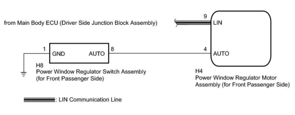 * The power window control system uses a multiplex communication system (LIN communication system). Inspect the communication function by following How to Proceed with Troubleshooting How To Proceed With Troubleshooting. Troubleshoot the power window control system after confirming that the communication system is functioning properly.
