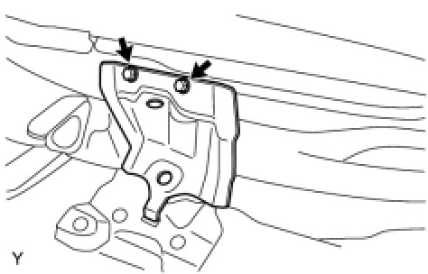 (b) Remove the 2 bolts and remove the cowl top panel outer center bracket.